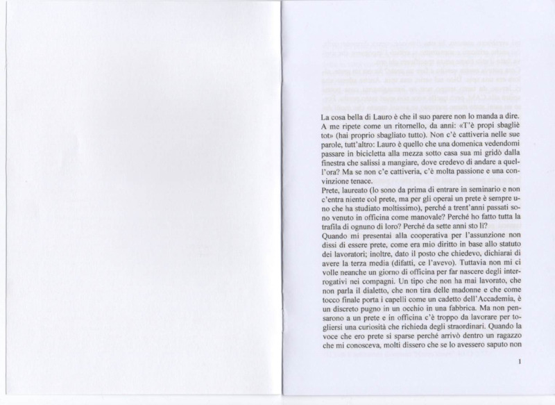 Scritto di Sandro Vesce sulla sua esperienza di prete artigiano